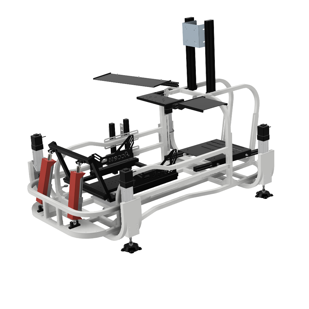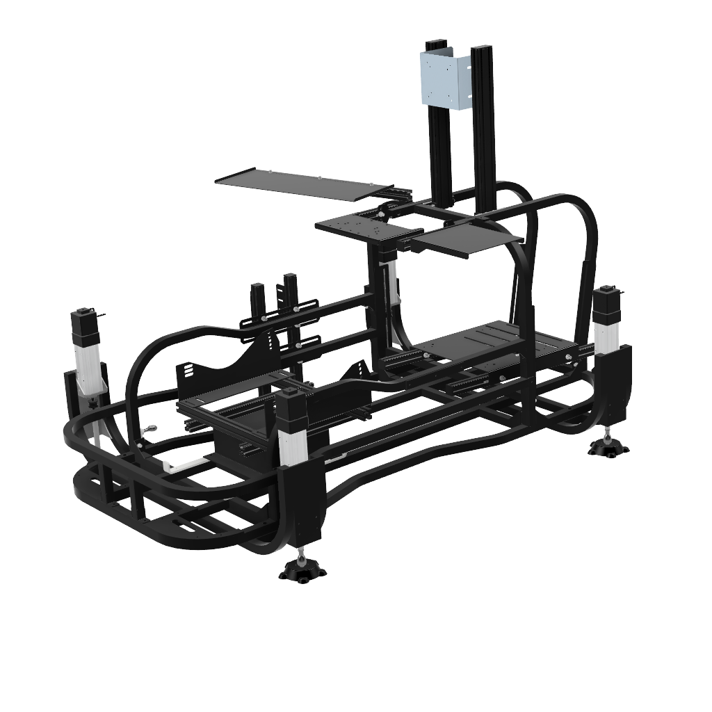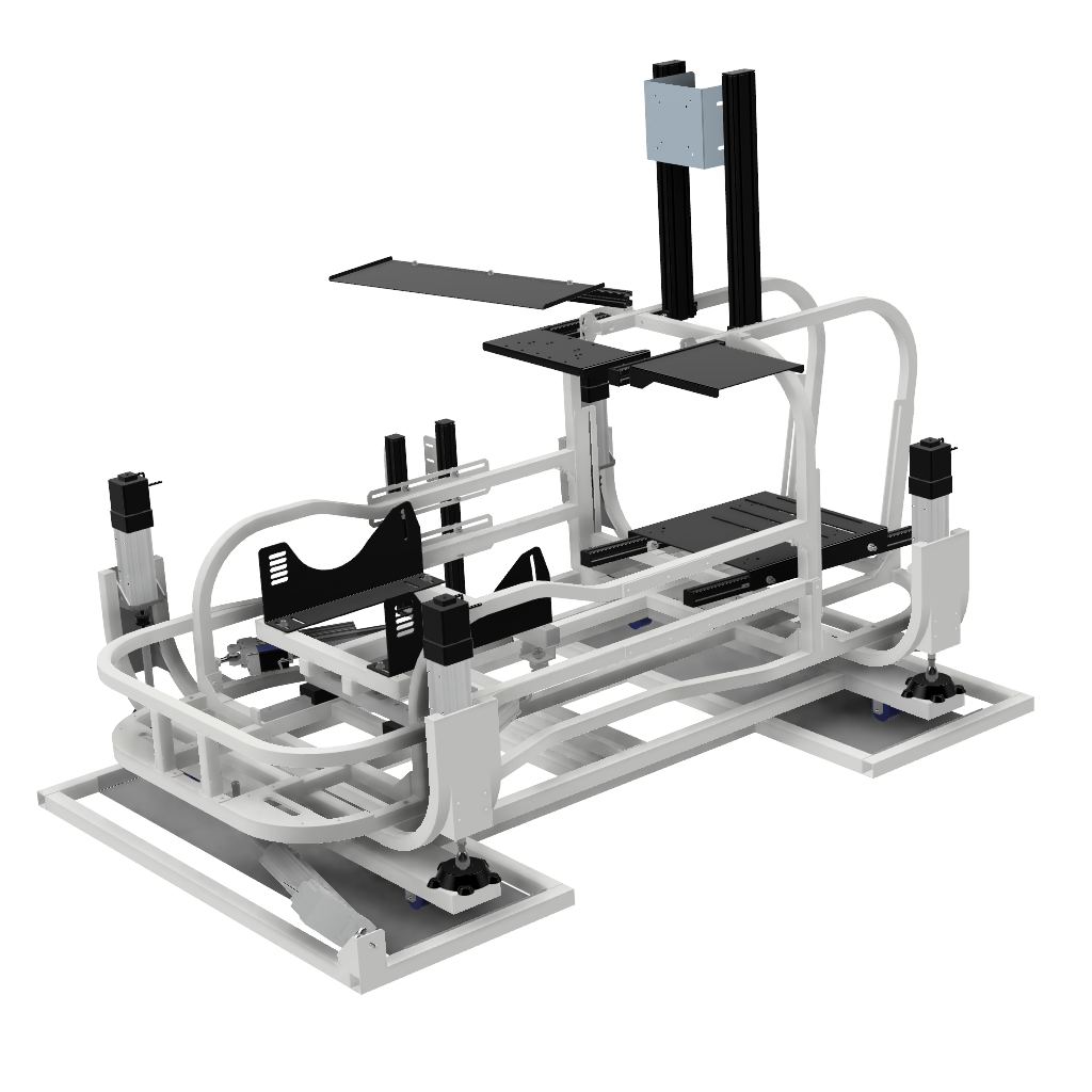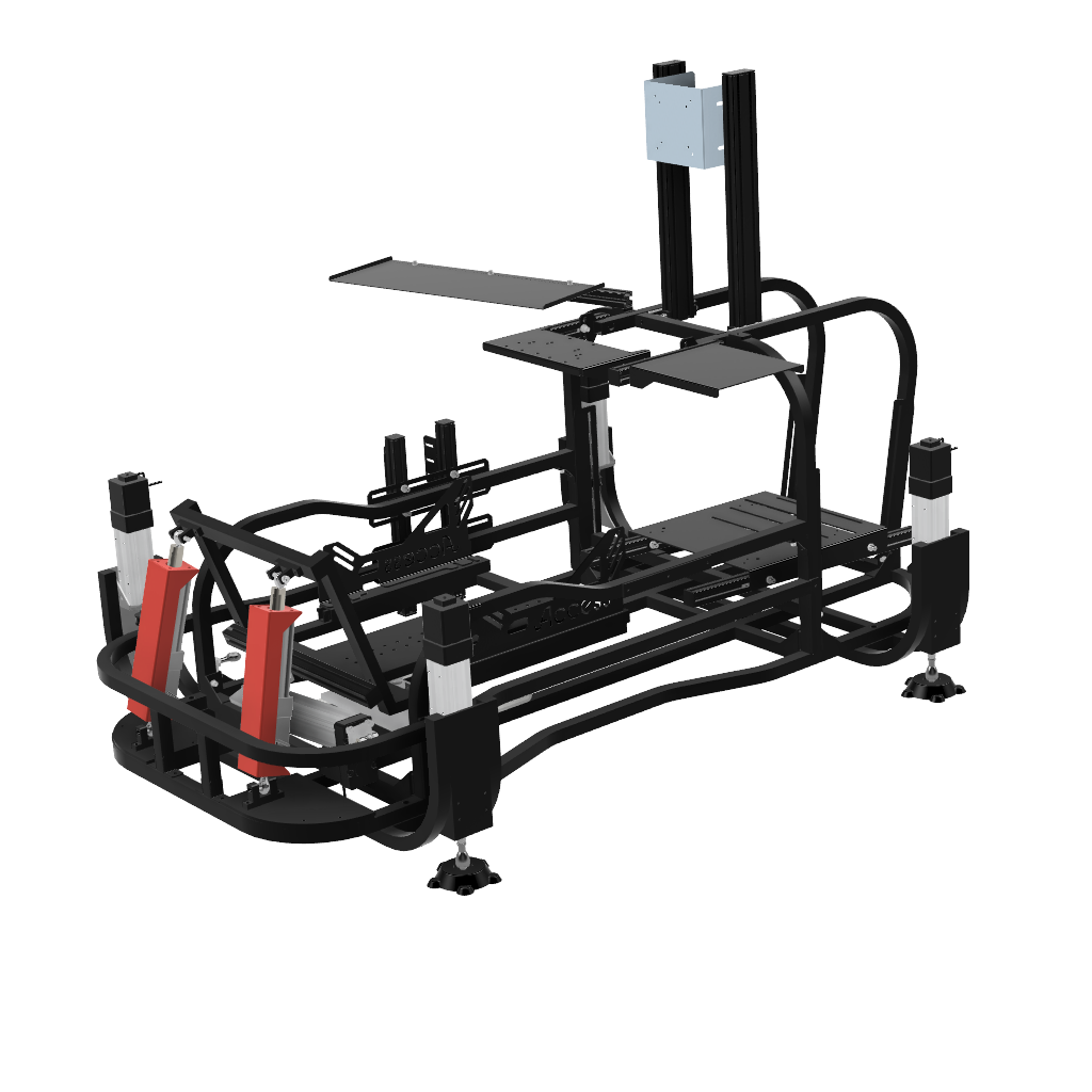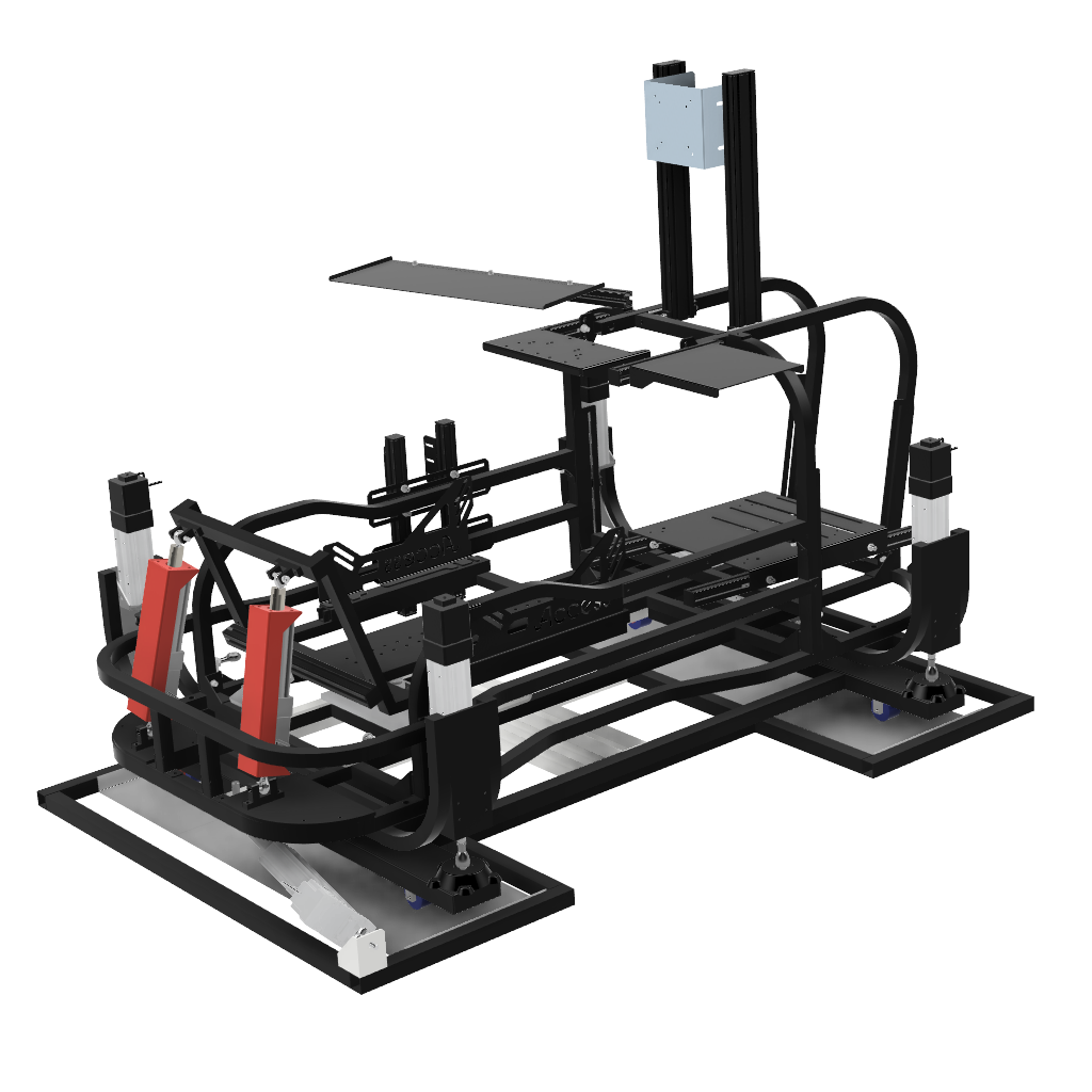 画像足部分の4軸仕様です。筐体ごと浮かせロール、ピッチの表現が可能です。※筐体全体が動くためモニターはモニターフレームを別途ご購入いただくとことを推奨します