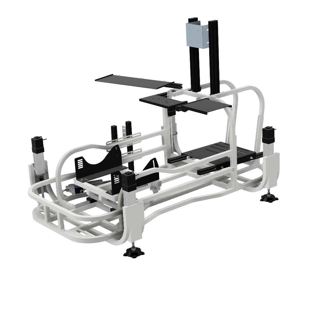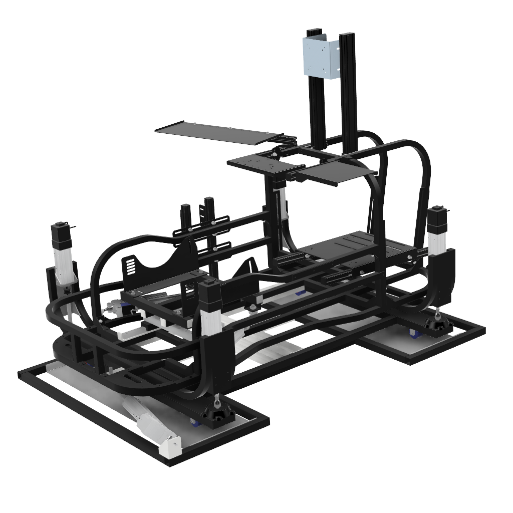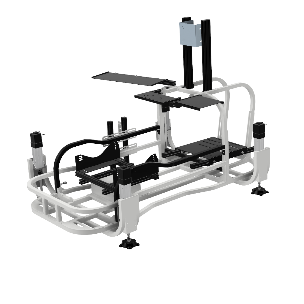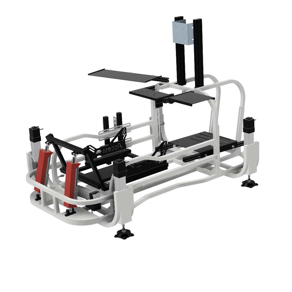 画像足部分の4軸仕様です。筐体ごと浮かせロール、ピッチの表現が可能です。※筐体全体が動くためモニターはモニターフレームを別途ご購入いただくとことを推奨します