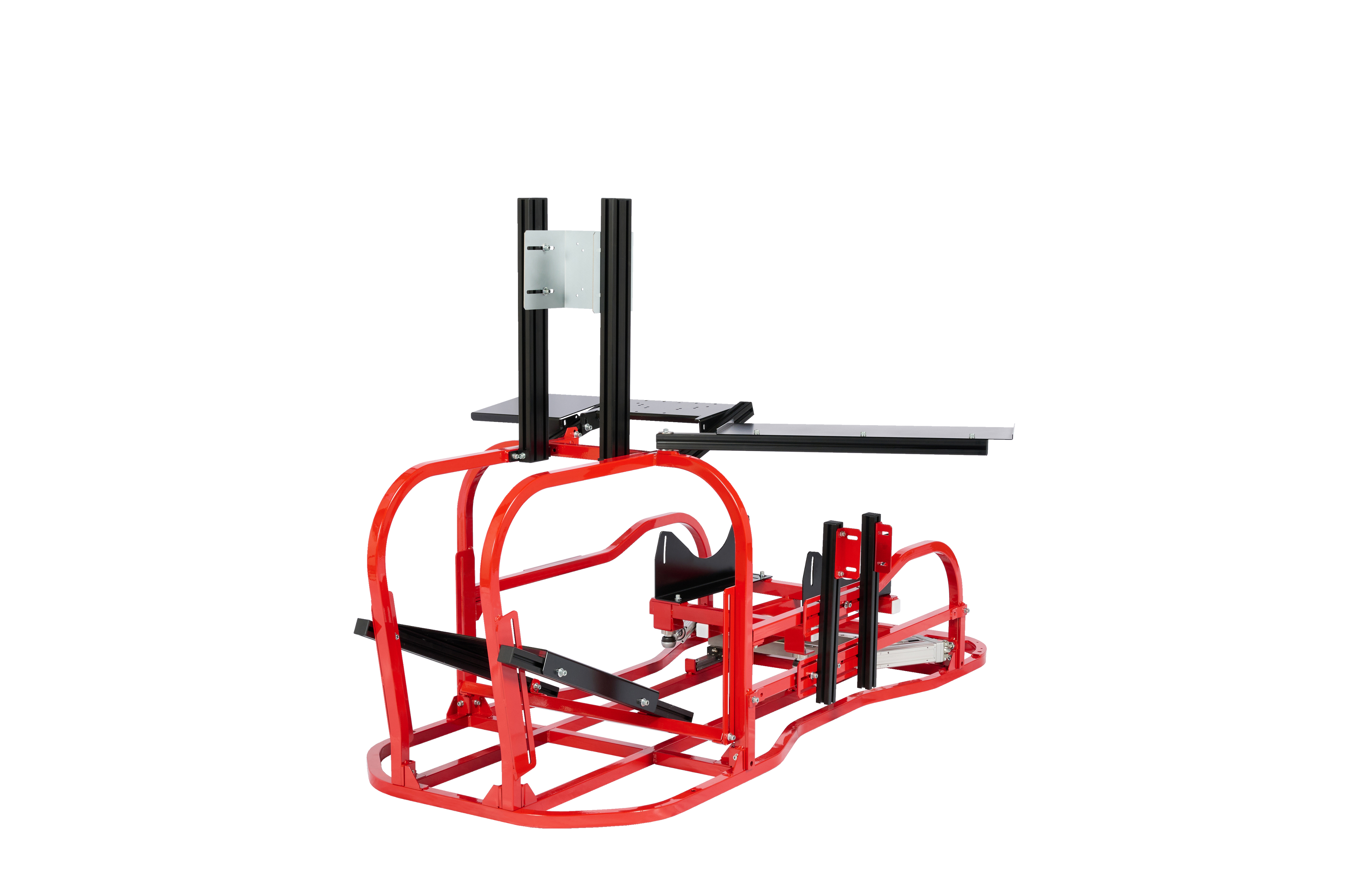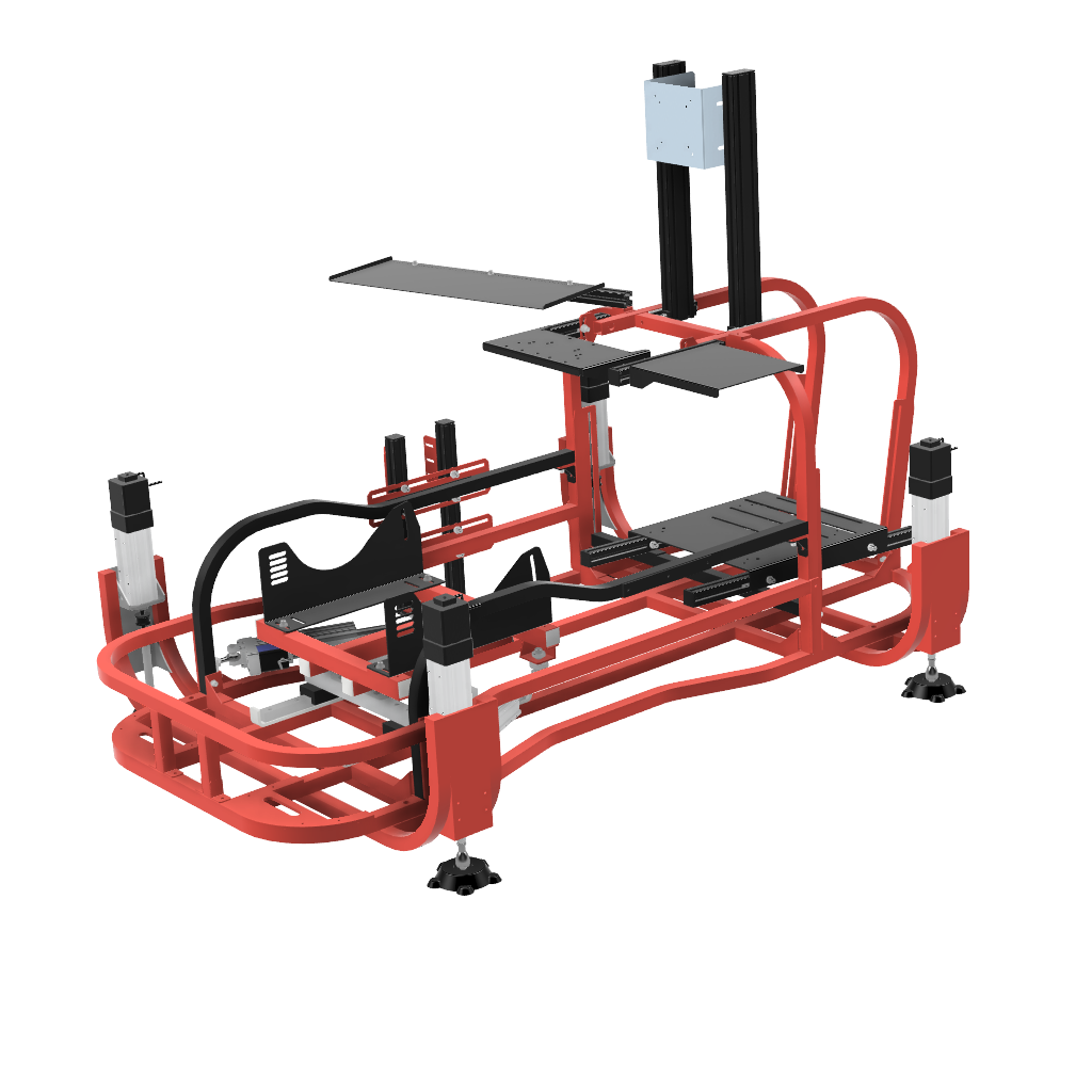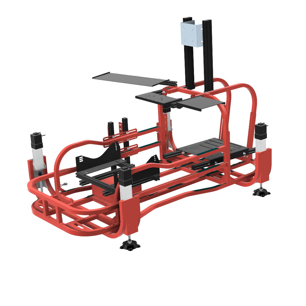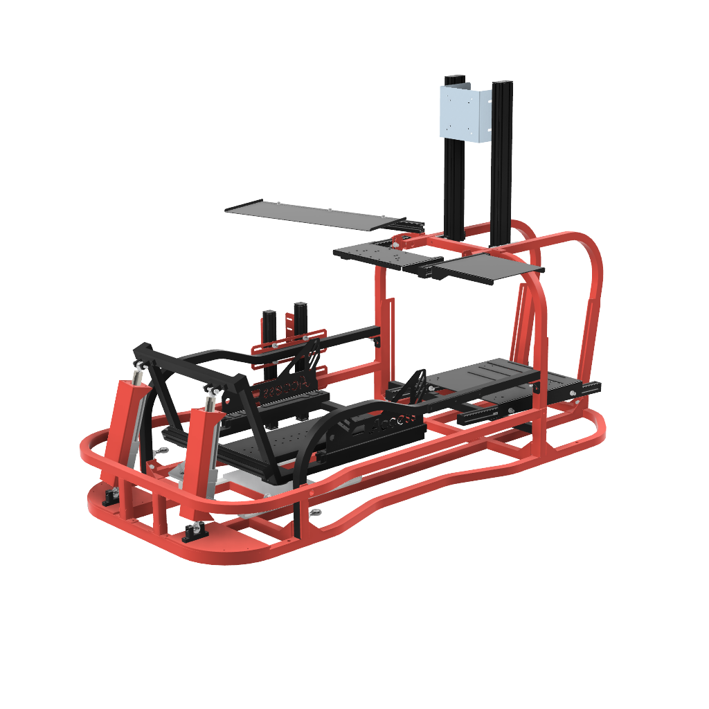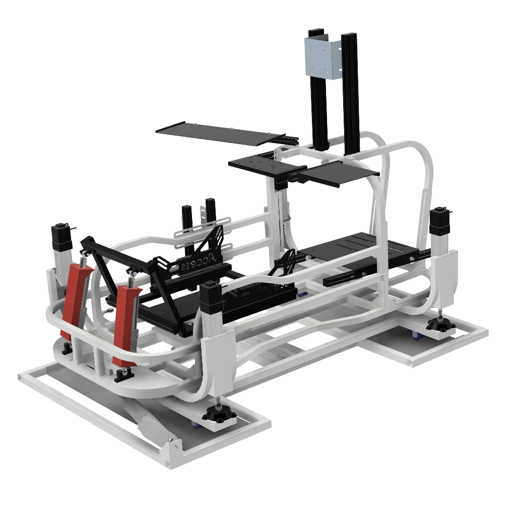 画像足部分の4軸仕様です。筐体ごと浮かせロール、ピッチの表現が可能です。※筐体全体が動くためモニターはモニターフレームを別途ご購入いただくとことを推奨します