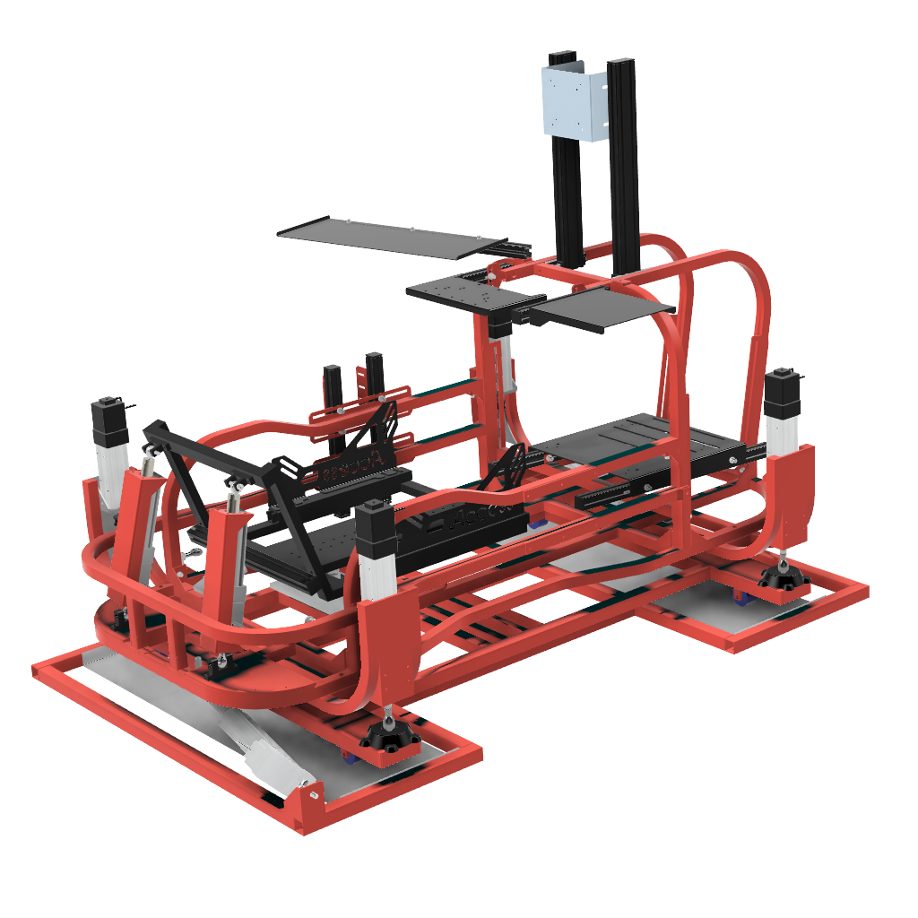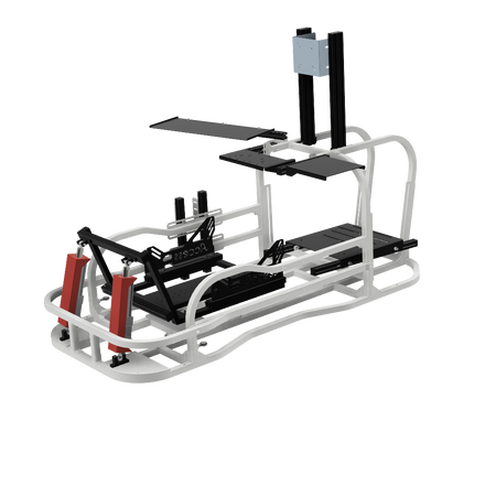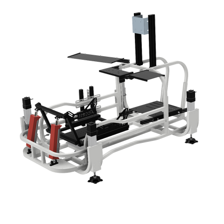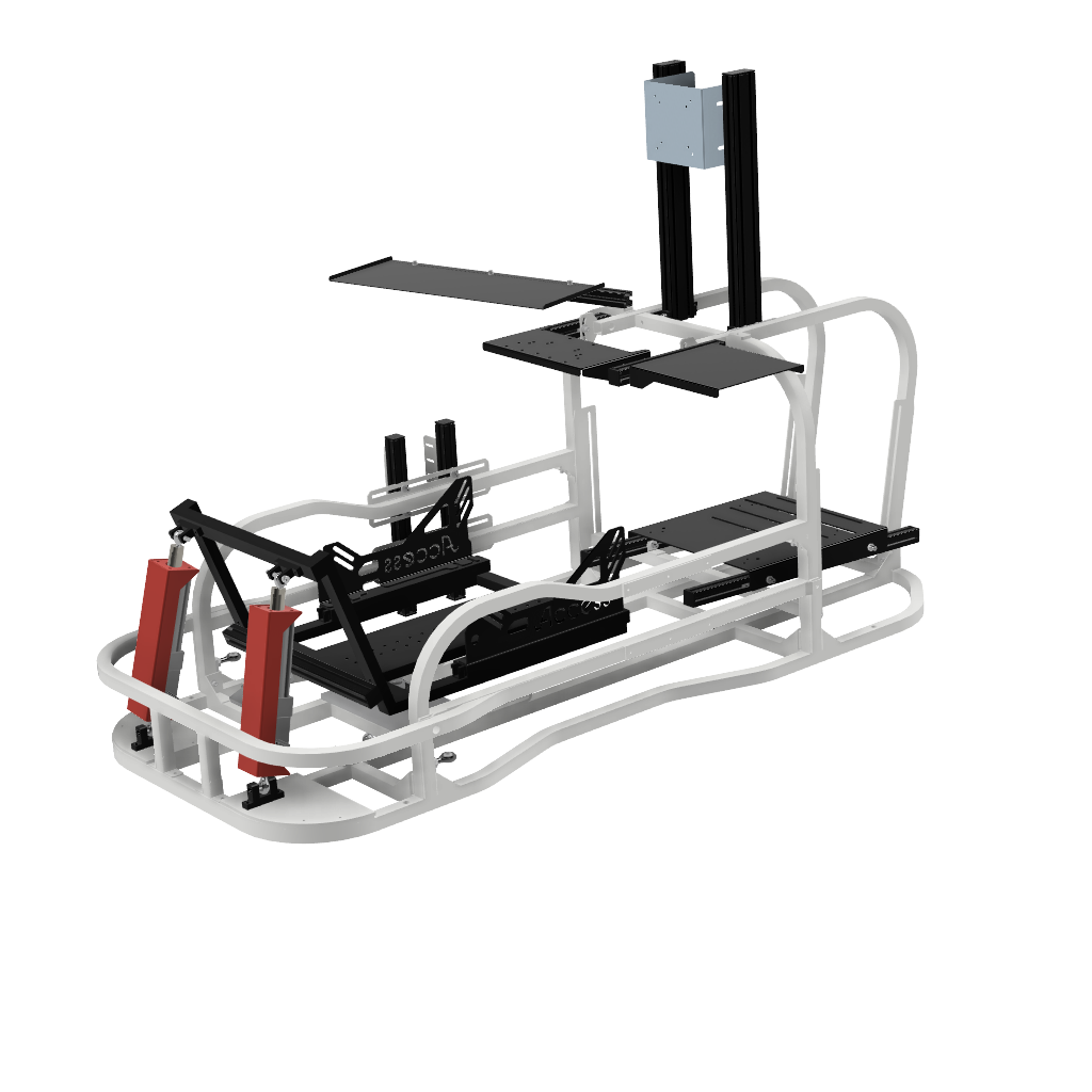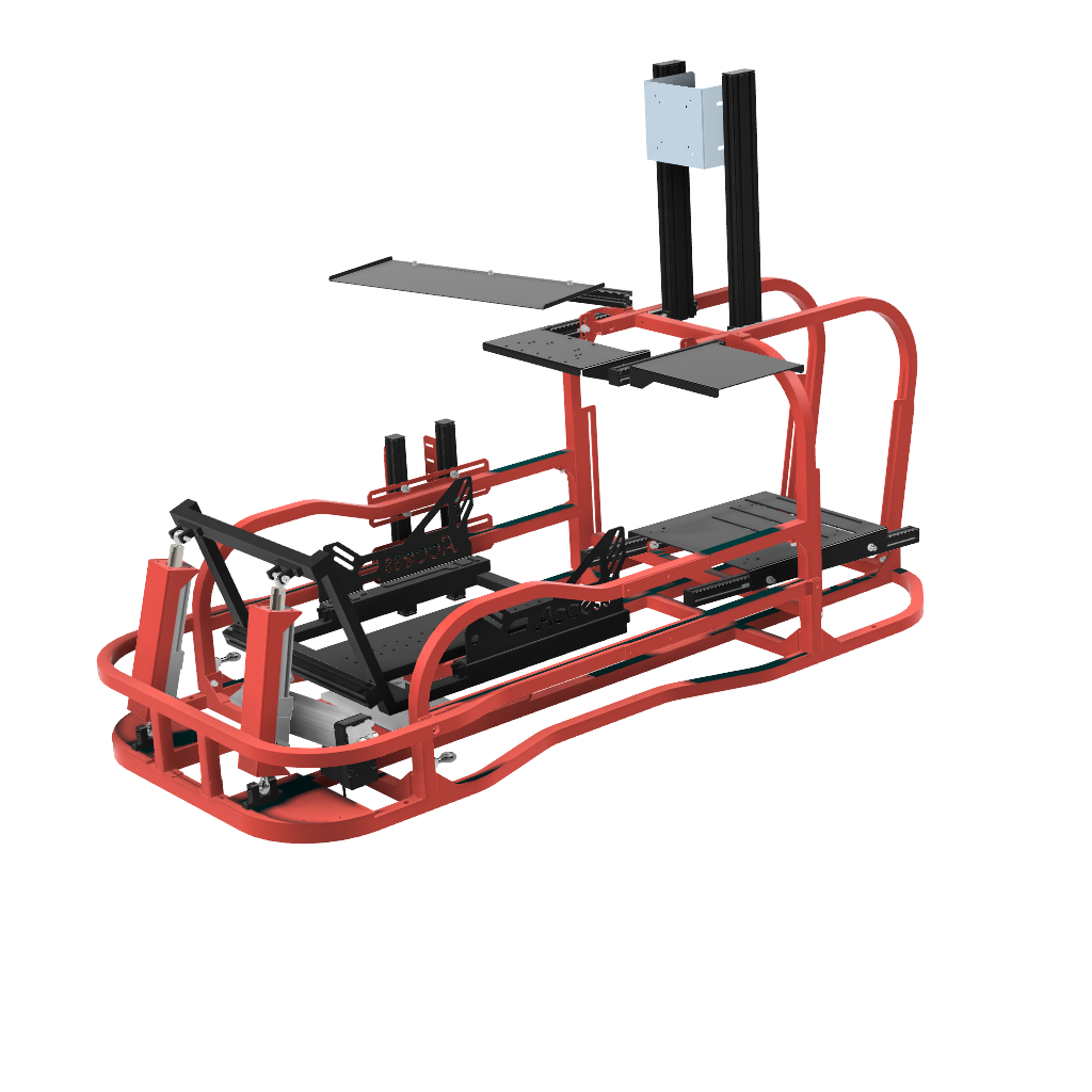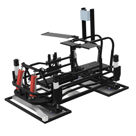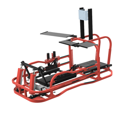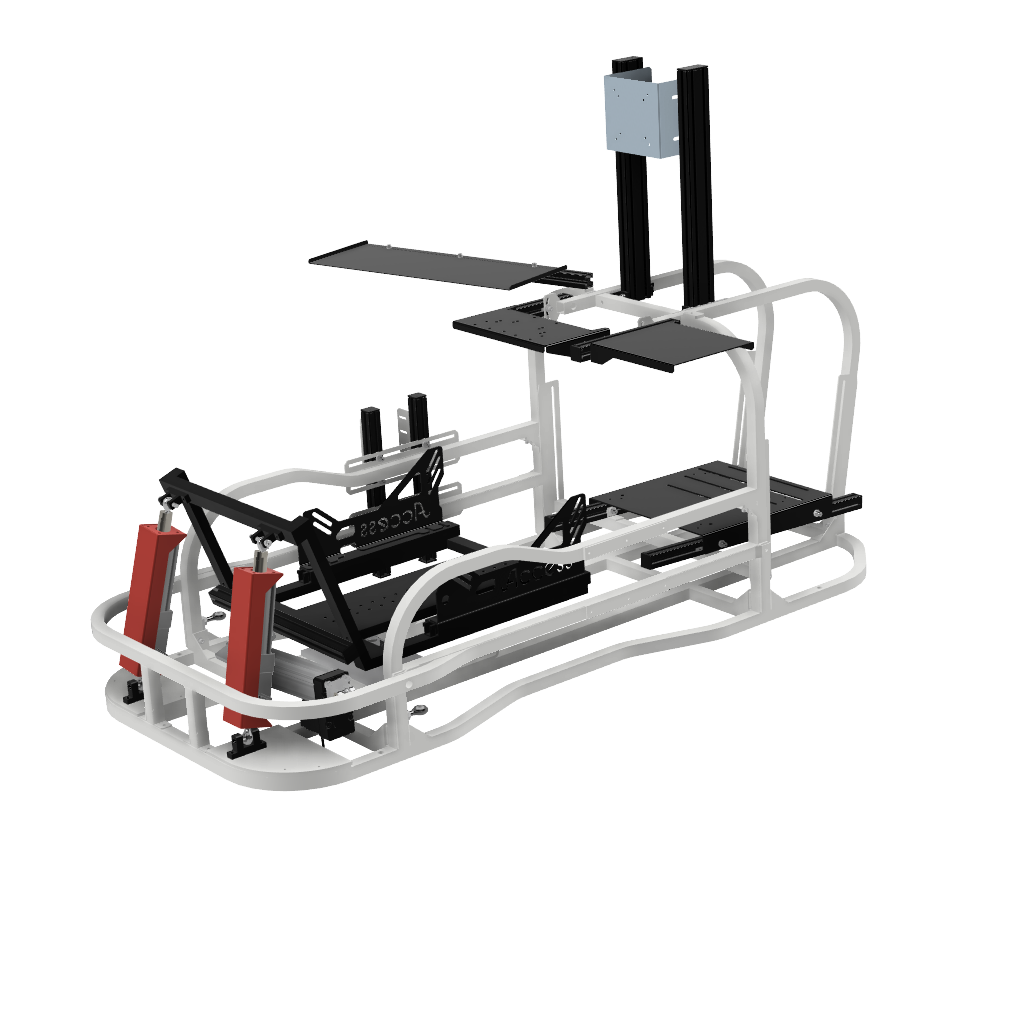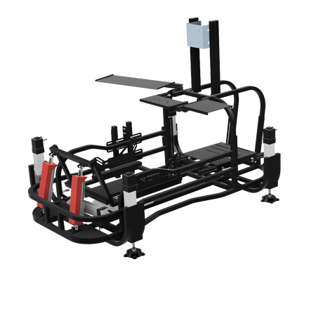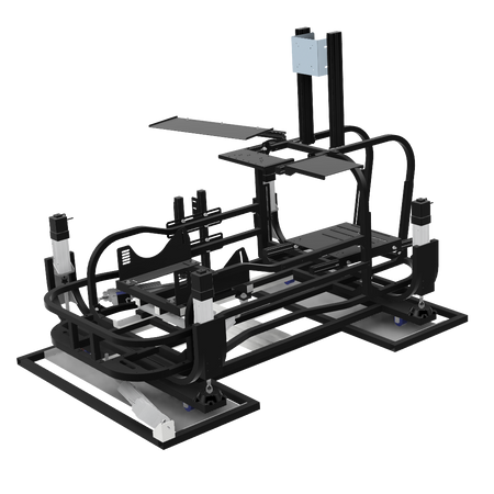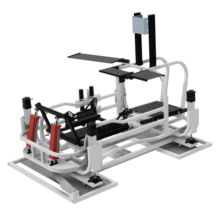 6軸(シートシリンダ縦仕様)にリアスライド表現用のシリンダを追加したものです。※この仕様から8軸に移行する場合はリアスライド用のシリンダは不要になります。同時に8軸をお考えの場合は6軸(シートシリンダ縦仕様)からアップグレードしてください。補強フレームは標準装備しています。