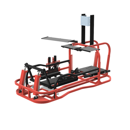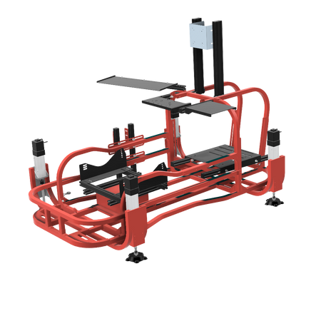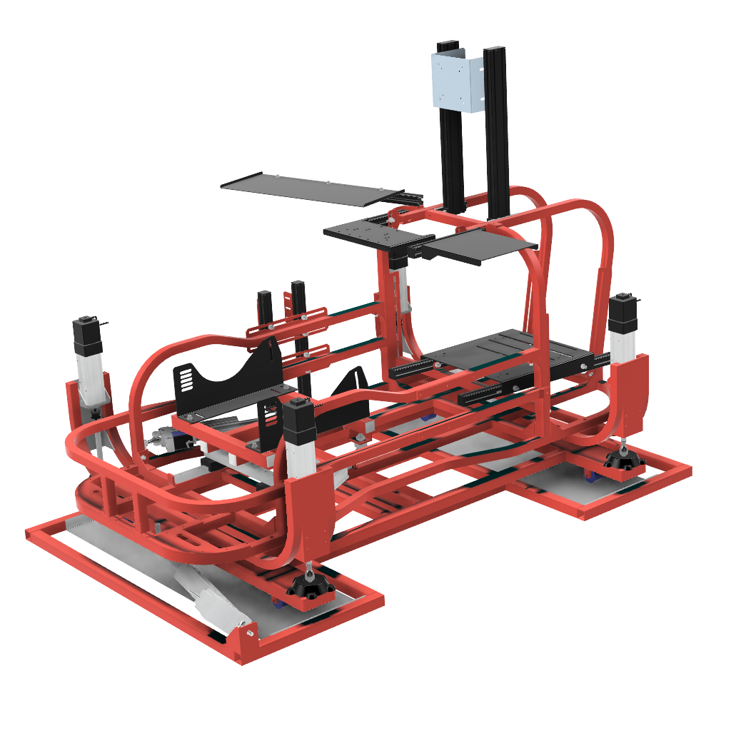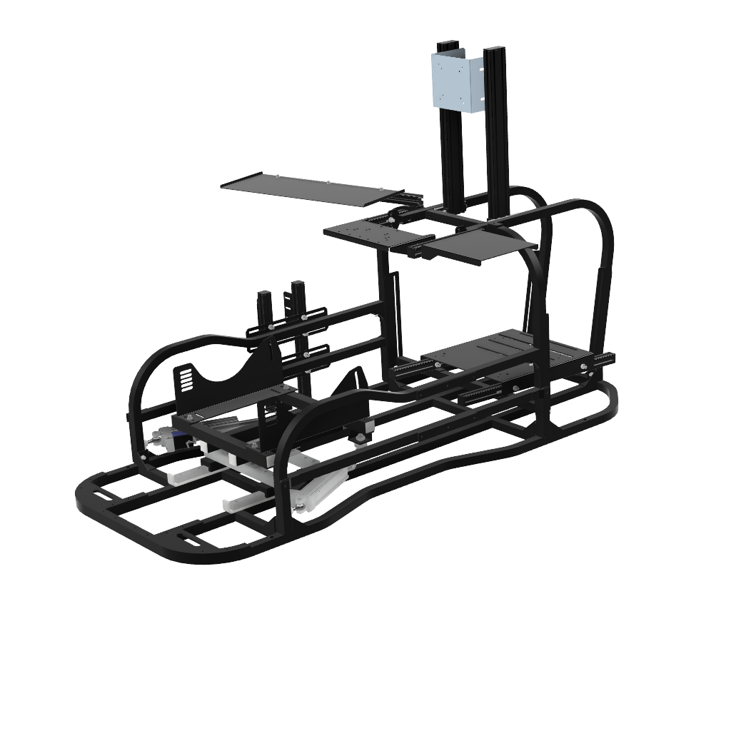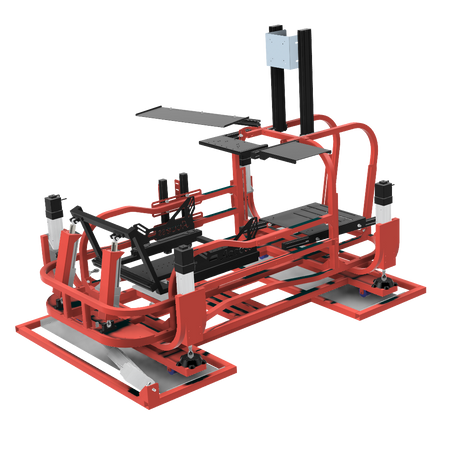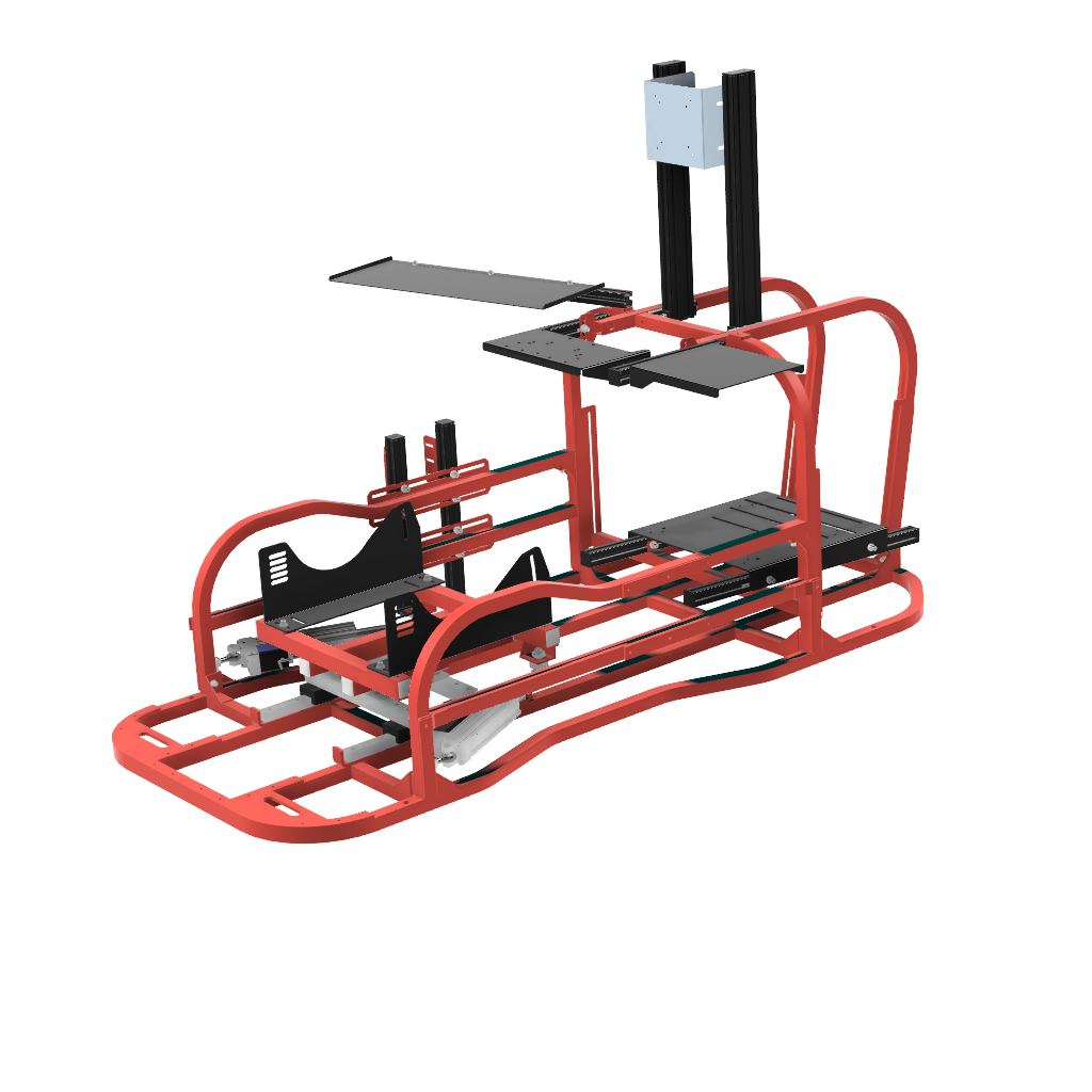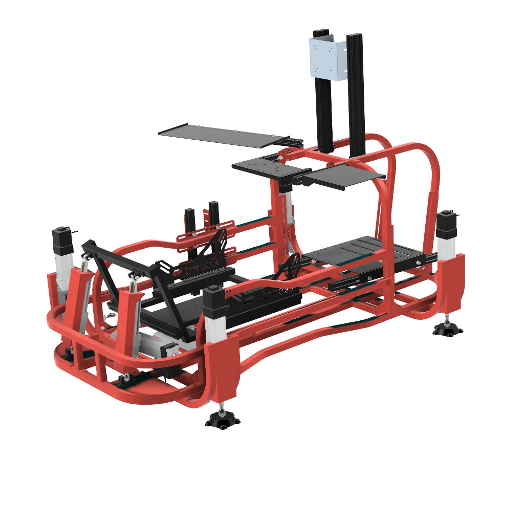 6軸(シートシリンダ縦仕様)にリアスライド表現用のシリンダを追加したものです。※この仕様から8軸に移行する場合はリアスライド用のシリンダは不要になります。同時に8軸をお考えの場合は6軸(シートシリンダ縦仕様)からアップグレードしてください。補強フレームは標準装備しています。